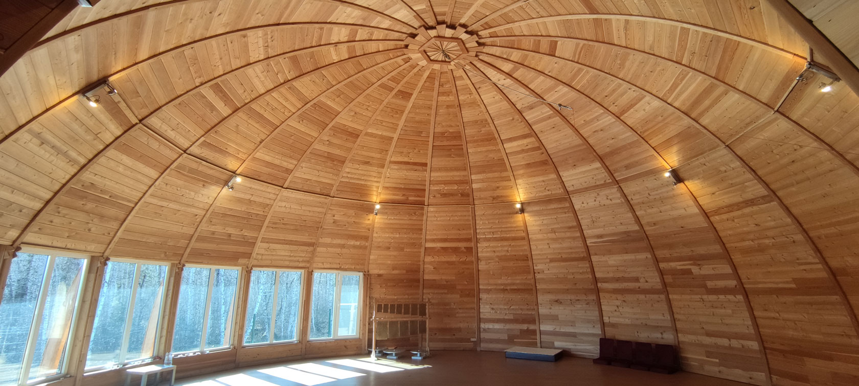 Геодезические купола на основе деревянного каркаса являются сложной пространственной конструкцией, имеющей в основе треугольник — нестрандартную фигуру для раскроя материала, именно поэтому стоимость такой конструкции может быть выше стоимости простого каркасного дома, но это только на первый взгляд — например: модульные каркасные дома имеют обычно небольшую площадь и низкий потолок, а высота полока в купольных домах площадью 30 м2 — 3,8 м, это по-настоящему раскошное объемное пространство, наполненоое воздухом и светом.